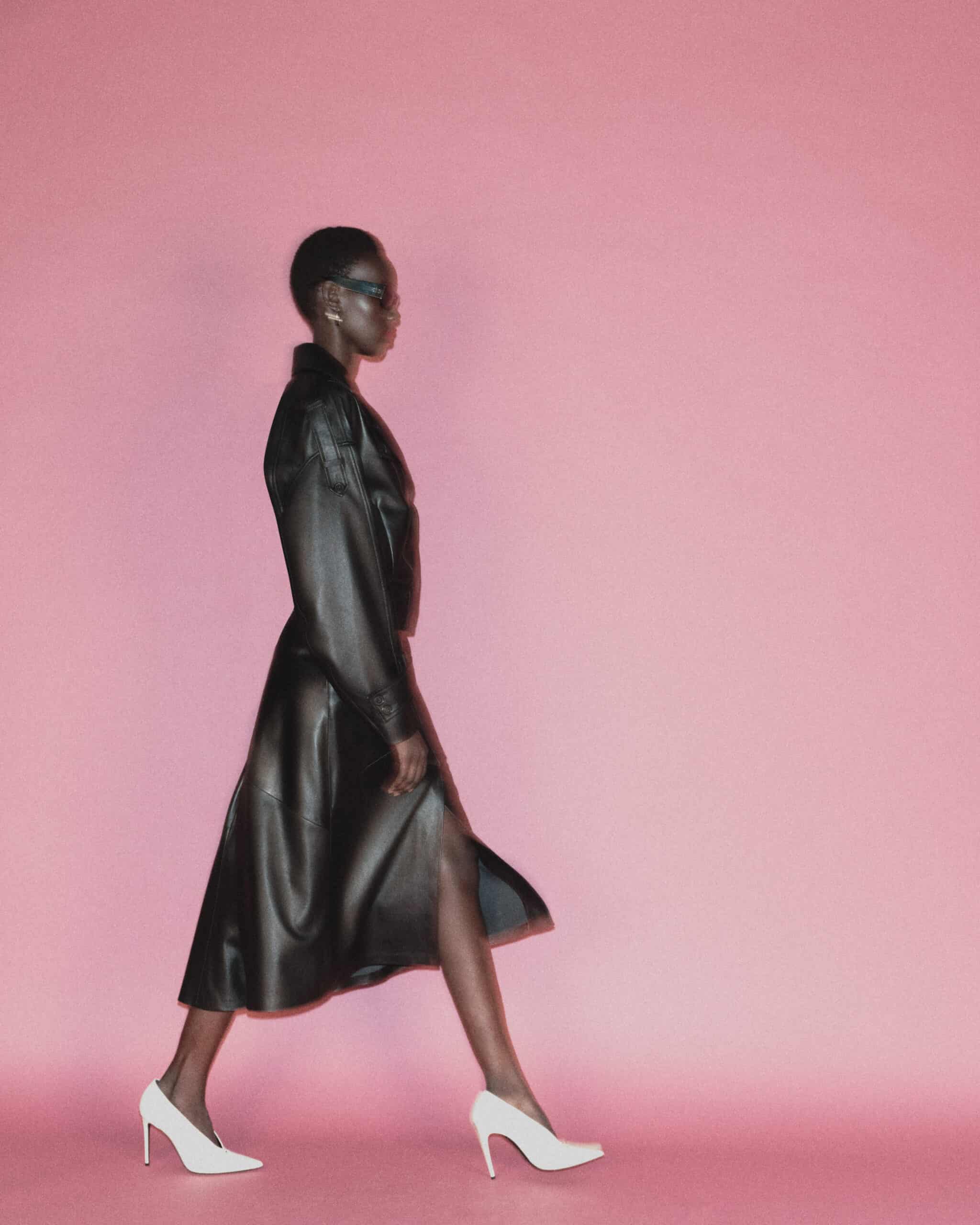 Leather, a long-standing signature of the brand, plays an important role throughout the collection. One of the key pieces this season is a rounded leather jacket with sculpted shoulders and a cropped length that stops at the hips. This design moves away from the classic biker jacket and instead focuses on volume and proportion, reflecting Barbara Bui’s evolving style. Notably, leather elements provide another layer to Barbara Bui FW26’s rich aesthetic.