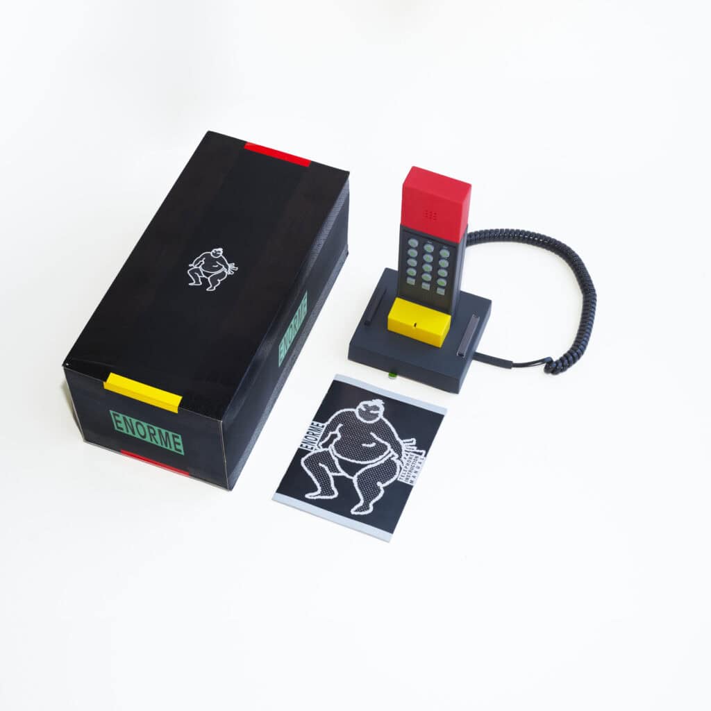 Designer/Maker: Ettore Sottsass and David Kelley Date: 1985 Product Name: Enorme Telephone Description: The ENORME telephone was the joint creation of Ettore Sottsass, David Kelley, and Jean Pigozzi. The maker’s 1,000 phones were ever produced. Each ENORME landline comes with the original 1985 packaging and instruction booklet designed by Sottsass and Kelley. ENORME is in the permanent collections of the Museum of Modern Art, the Metropolitan Museum of Art and the Rhode Island School of Design. Courtesy of ENORME, photo credit to Maya Fuhr