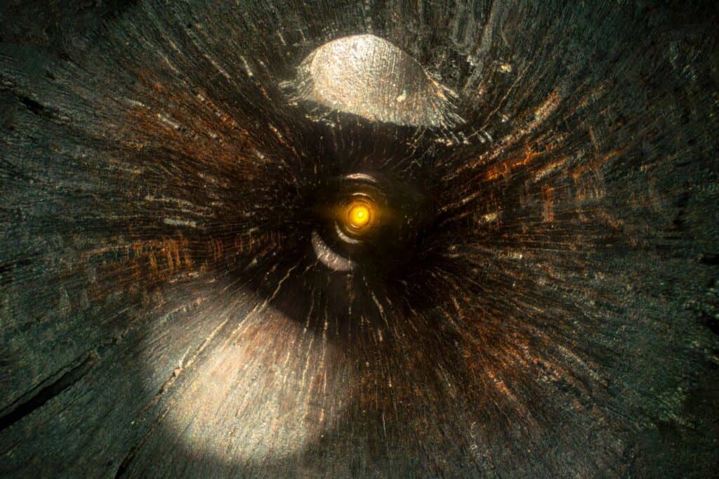Once the instrument is finally in front of me the rest is a careful exercise in visual engineering. It’s a carefully crafted optical illusion. There are a few cues that tell the brain when something is small, even if it fills a wall. Depth of field is one. When you look at something tiny up close, the background melts into a blur. My lenses behave the same way. They are only four millimetres wide, which means they can reach tiny spaces, but they cannot produce much depth. To counter that I use focus stacking, often thousands of frames, to keep the entire scene sharp. I also shoot with very wide angles and usually create panoramas. The back of a violin can be much smaller in the stitched image than the area close to the lens. So objects shrink faster than in normal life.