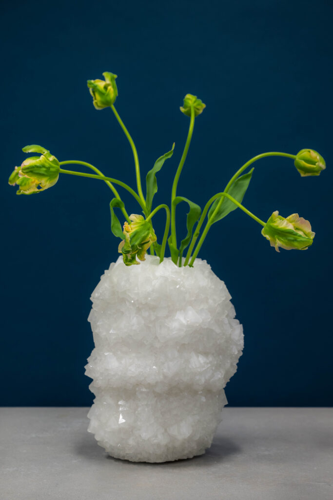 In his studio, Monté dissolves minerals in heated water to create supersaturated solutions. He then carefully guides the crystallisation process. This allows him to shape the size, form, and colour. In doing so, he makes sure every piece is unique. Committed to sustainability, he uses 100% natural, biodegradable recipes. Ultimately, the result is a seamless fusion of technology and nature. This produces crystal artwork objects that are both functional and visually stunning.