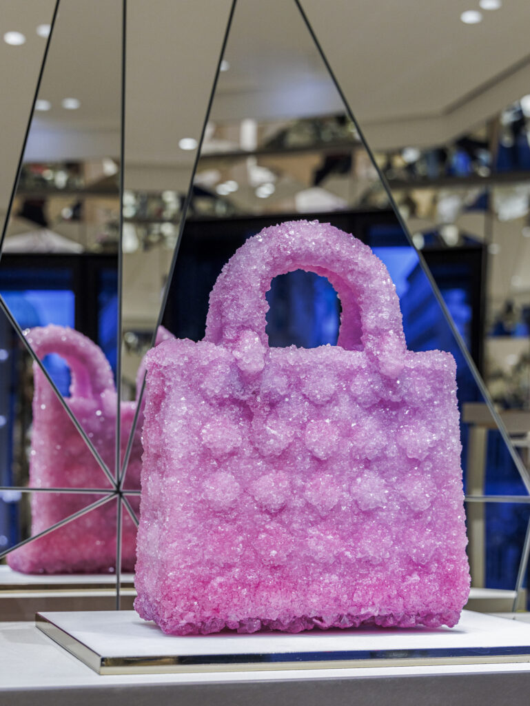 Monté’s work goes beyond standalone art. His portfolio includes vases, light sculptures, wall panels, chairs, bags, and visual merchandising installations. Moreover, he has collaborated with luxury brands, bringing his expertise in artwork made from crystal to iconic designs. For Dior, he created window concepts inspired by geodes. With BULO, he crystallised a mid-century chair as a tribute to designer Léon Stynen. Finally, for Aari Bostroem, he produced a limited edition of crystallised Metropolitan glasses.