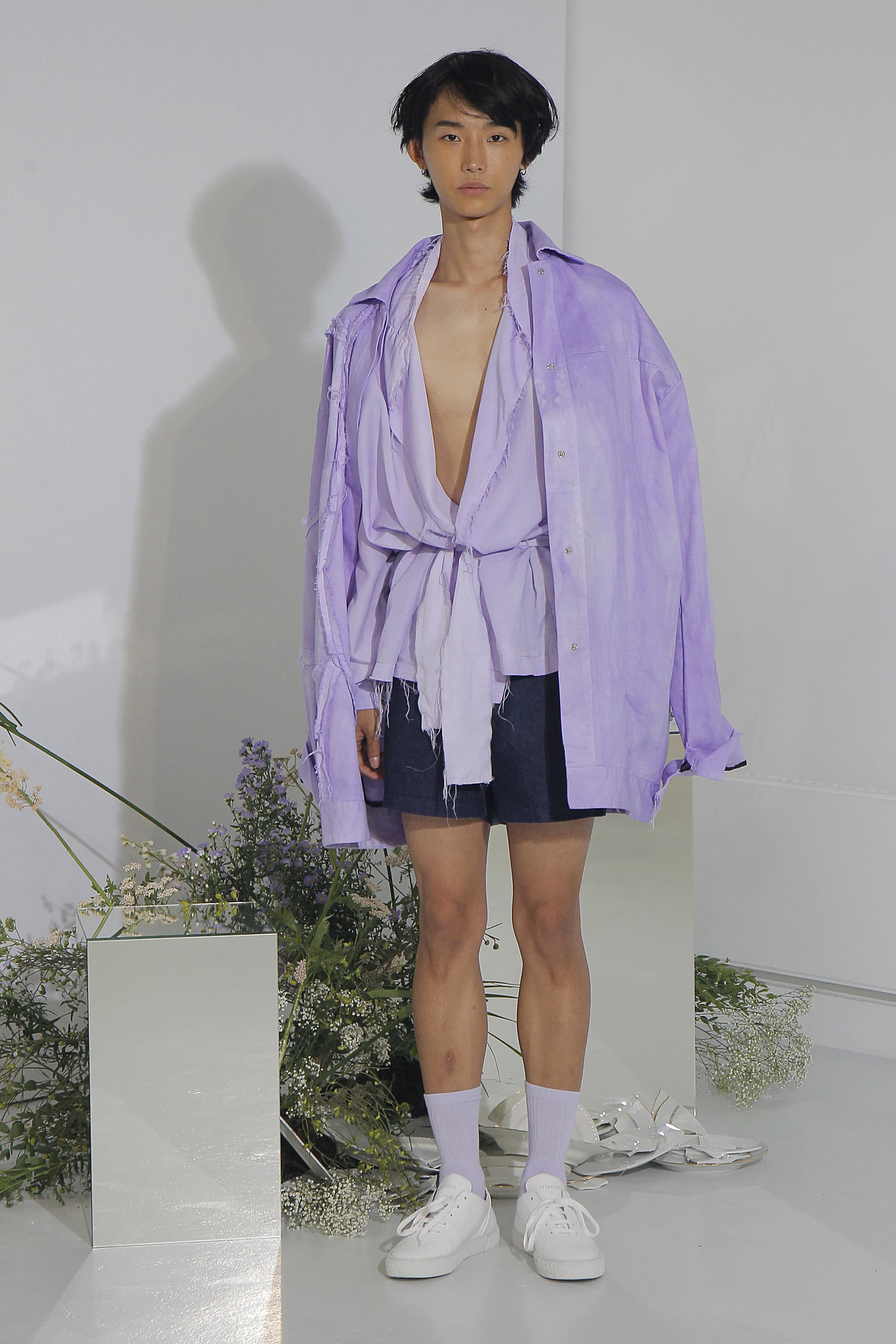 Hugo Costa’s SS19 collection emphasizes the imperfection and re-modification of the men’s wardrobe: frayed bathrobes laced and knotted, the models wore super oversized shirts that are heavily draped or cropped and often have drooping sleeves. IRK noticed the redesigned patchworks, put on the sleeves randomly.