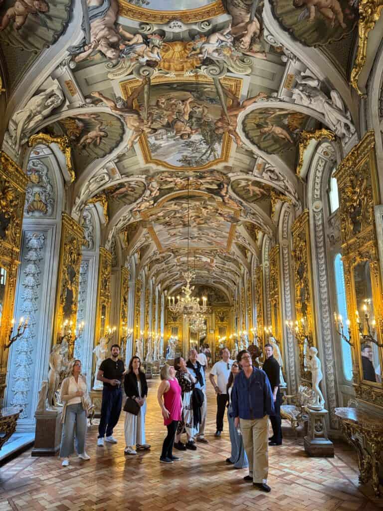 A short walk away, Galleria Doria Pamphilj revealed living history. The palace remains a private home to the Doria family, filled with masterpieces by Caravaggio and Velázquez. Wandering through mirrored corridors, the designers spoke quietly, as if entering a family memory.