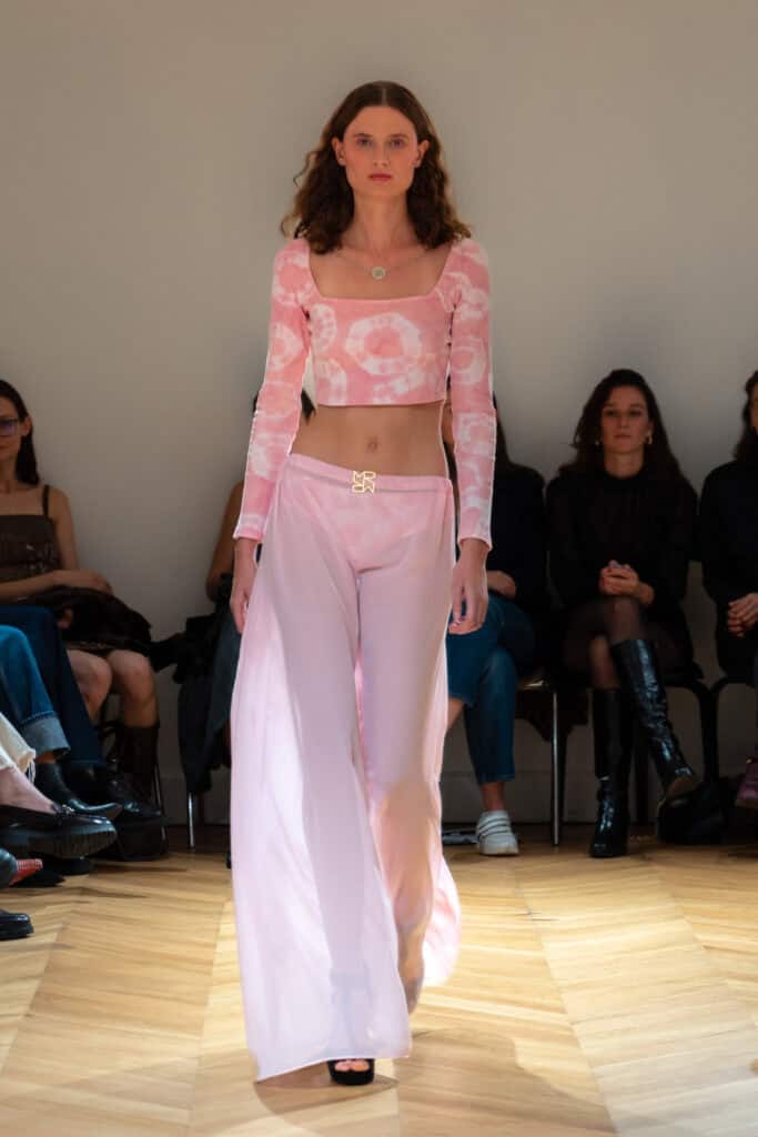 Together, these three notions guide Maël Roussel’s creative process, allowing him to experiment with light, texture, and perception to craft silhouettes that balance fragility and strength. “Transparency represents sincerity, the idea of embracing both the body and emotion. Blurriness evokes poetry, where not everything needs to be clear to be understood. Détournement expresses my desire to transform the ordinary, a tablecloth, a shirt, a knit, into an object of desire. Indeed, these three notions intertwine throughout my work, allowing me to play with light, texture, and perception. This approach creates silhouettes that feel both fragile and assertive,” he explains.