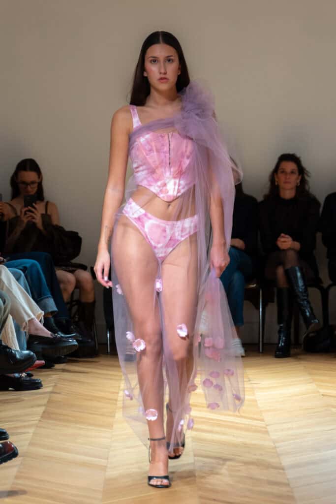 Even today, Maël Roussel draws from those colorful and sensitive memories to create garments that celebrate life, softness, and sincerity. Moreover, he says, “My brand was born from a gaze, a desire to capture the beauty of the everyday and turn it into something tangible. Photography taught me to observe light, nuance, and transparency. I learned to capture the fragility of a fleeting moment. Flowers, for me, are symbols of memory and rebirth. Each collection is like a moving image, a memory that takes form and can be worn,”.