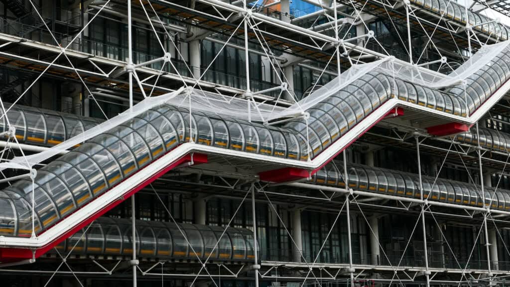 Meanwhile, in the heart of Paris, modern architecture reveals itself through radical openness. The Centre Pompidou, with its exposed structural elements and colorful pipes, famously turned architecture “inside out.” Decades after its construction, it remains a symbol of creative disruption. Just a short walk away, the Canopée des Halles reimagines public space through its glass roof. Covering a major transportation hub, it transforms a functional area into a luminous, almost organic environment.