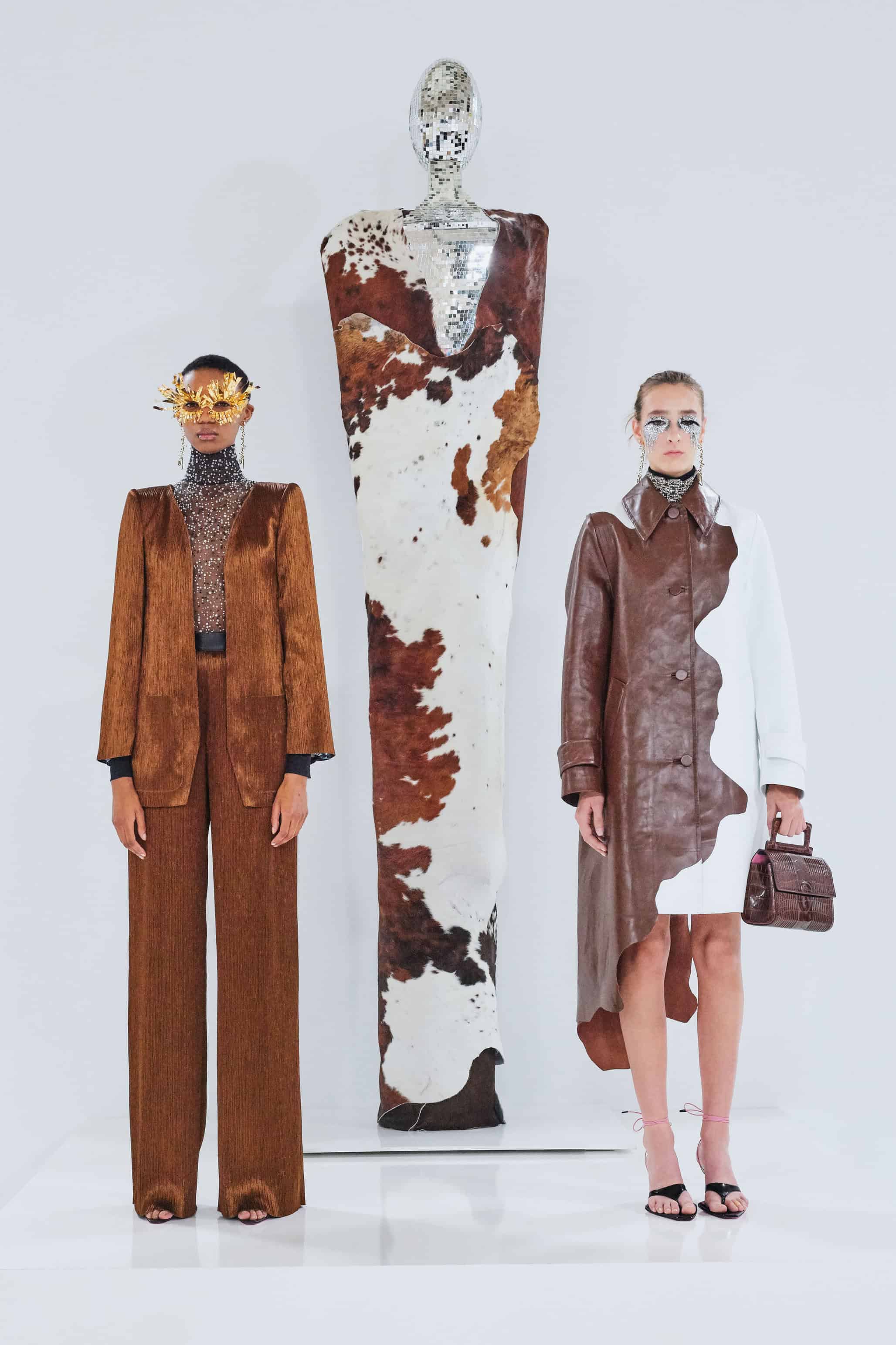 He told us that he drew a total of 20 totems, 10 of which were created for the show. Roseberry explained that “The larger than life sculptures are in the shape of Elsa in tribute to her. They started the inspiration for the collection so that there are two looks per sculpture. It is a tribute to her but also very personal to me.” In reference to the My Little Pony sculpture on his left “Those were my favorite toys as a child. I literally had over 100 of them. Each of the sculptures is personal and I wanted to have fun while respecting and turning up the volume for the codes of the house.”