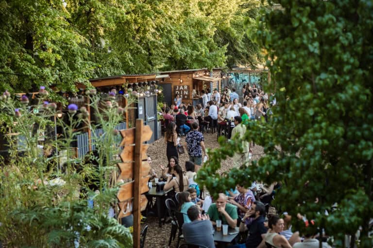 Playful yet poignant, the collection’s narrative extended beyond art history. A burgundy knit bore the stitched phrase, “Stay Faithfull to Marianne”. An homage to the late singer and style icon Marianne Faithfull, who passed away in January. The collection also paid tribute to London itself. S.S.Daley embraced the city’s essence by featuring T-shirts emblazoned with imagined cityscapes, including Big Ben and whimsical park scenes populated by ducks and dogs.