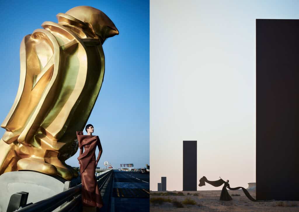 • Mohamed Benchellal, where couture meets architecture in a powerful desert setting